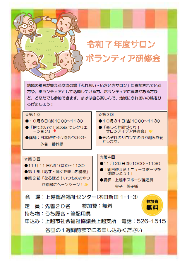 【お申込み・お問合せ】上越市社会福祉協議会 上越支所/電話025-526-1515