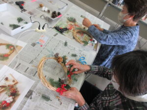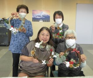 11月22日大潟コミュニティプラザにて「ボランティア講座&ワークショップ」を開催しました。初心者向けのボランティア講座を学んだあと、ワークショップとして参加者の皆さんにクリスマスリースを作っていただきました。完成したリースは”誰かのために役立つ活動”として大潟区内の福祉施設へプレゼントしました。地域のつながりを感じる素敵な機会となりました。