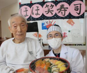 ほほ笑よしかわの里では、2月11日にレクリエーション活動として、一日限りのほほ笑寿司が開店しました!