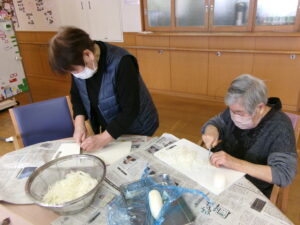 完成した「社協だより」をお届けするため、中ノ俣集落のお茶飲み会へ、集落づくり推進員さんと一緒に伺いました。
