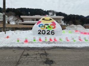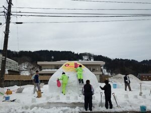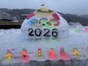 安塚 灯の回廊でぬくりん雪像をつくりました。